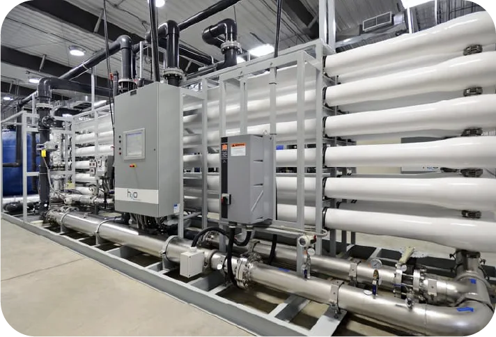 Les systèmes d’échange d’ions permettent de produire de l’eau ultrapure, de déminéraliser l’eau après osmose inverse grâce aux colonnes de résine à lit mixte et aux cheminées d’électrodéionisation.